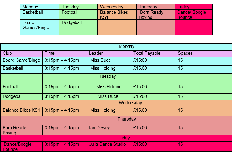 All places are allocated on a termly basis and parents/guardians are required to fill out an agreement which outlines which evenings are required. Fees must be paid at the end of every week, via ParentPay.